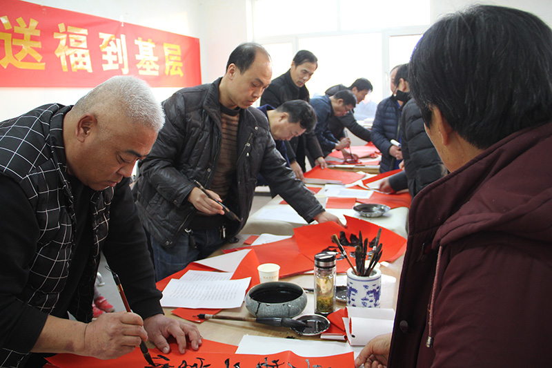 集團(tuán)公司黨委委員、紀(jì)委書記狄彬親自帶領(lǐng)集團(tuán)公司書法志愿者,分別在青鋒農(nóng)場(chǎng)和原二分場(chǎng)大院,進(jìn)行了現(xiàn)場(chǎng)書寫,受到青鋒群眾及公司職工的歡迎。一幅幅喜慶的春聯(lián),一張張熱情的笑臉,伴隨著愉快的笑聲,活動(dòng)現(xiàn)場(chǎng)充滿歡樂(lè)祥和的氣氛。