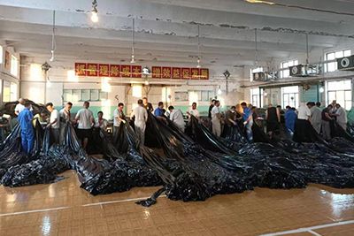 為搶在6月27日強(qiáng)降雨到來前完成青鋒公司四個(gè)技改保鹵圈的鹽膜安裝工程,工貿(mào)公司全體干部職工放棄節(jié)假日,冒酷暑、搶工期、趕任務(wù),全力突擊收放機(jī)設(shè)備制造安裝和鹽膜加工任務(wù)。