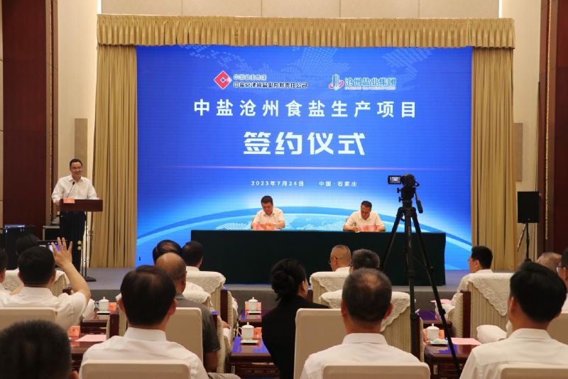 河北省工信廳、滄州市政府、渤海新區(qū)黃驊市政府相關領導,中鹽京津冀副總經(jīng)理張朝暉,公司黨委副書記王化池,副總經(jīng)理文興峰、于劍和相關人員參加了簽約儀式。