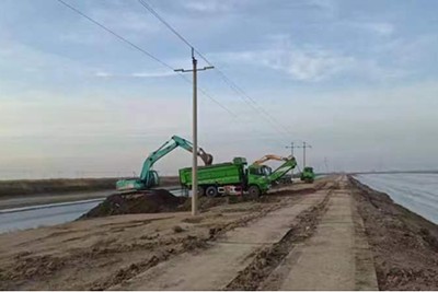 在施工現(xiàn)場,機械轟鳴,車輛來回穿梭。為了趕工期、搶進度,自2月3日施工以來,職工們夜以繼日地對每個施工點進行收料、檢查、測點,嚴(yán)把各個環(huán)節(jié),多點并進,穩(wěn)步推進。本次填方工程面臨的最大挑戰(zhàn)是水深導(dǎo)致的排水困難,為確保如期完成填方任務(wù),項目部采取了有效的排水措施,加大了排水力度。目前,填方二標(biāo)段已完成部分排水工作,開始大量填土,日填土量達到4000余立方米。