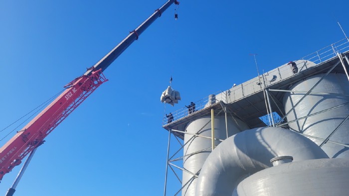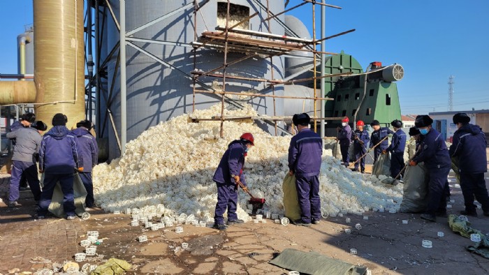 溴素二廠廠區(qū)南“吹出塔”始建于2017年,經(jīng)過多年高強度運行,內(nèi)部填充物“階梯環(huán)”腐蝕氧化嚴重,致使溴素生產(chǎn)過程中吸收效果大大降低。為進一步提高溴素吸收率,增強塔內(nèi)綜合反應(yīng)效果,保障溴素生產(chǎn)質(zhì)量,溴素二廠全體干部職工于1月4日開始,啟動“吹出塔”填充物更換工作。在更換過程中,職工們協(xié)同作戰(zhàn),分工合作,僅用三天時間便完成了更換工作,比原計劃提前了兩天,為2024年溴素穩(wěn)產(chǎn)高產(chǎn)打下堅實基礎(chǔ)。