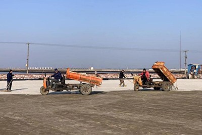 節(jié)日期間,班子成員帶頭堅守崗位值班值守,同時做好所屬各單位的工作督查。各制鹽單位抓住春節(jié)期間氣溫上升的有利時機廣聚鹵源多制鹵,扎實做好結(jié)晶池活碴、邊角污染物處理,潑水滅塵等工作,做好越冬結(jié)晶池晾曬處理。2月6日至16日,長蘆公司共晾曬處理越冬結(jié)晶池1.3萬公畝,換新鹵結(jié)晶面積占正在結(jié)晶面積的52%以上,提前進入春曬狀態(tài)的同時為應(yīng)對下步天氣過程做好了充足準(zhǔn)備。部分生產(chǎn)單元還根據(jù)鹵水存量,適時拖泥、晾池、軋實、撒鹽種、量鹵灌池,做好冬灌工作,增加結(jié)晶面積,至2月16日,新增結(jié)晶面積547.7公畝。