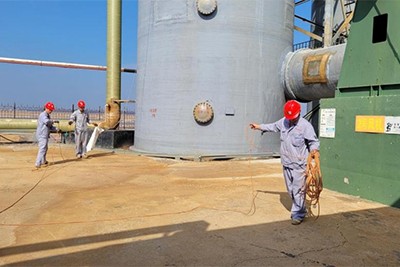 走進廠區(qū),機器的轟鳴聲交織成一曲獨特的生產(chǎn)交響樂。在溴素生產(chǎn)氣化區(qū)、富集區(qū)、提取車間,生產(chǎn)帶班長正認(rèn)真地盯著各項數(shù)據(jù)指標(biāo)的變化,仔細(xì)進行記錄和分析,每一個細(xì)微的參數(shù)變動都逃不過他的眼睛。班組長陳金浩說:“吹溴工藝的化工生產(chǎn)過程需要時刻保持精神專注,不能有絲毫的懈怠馬虎,不然會大大影響溴的生產(chǎn)質(zhì)量和產(chǎn)量。雖然很希望與家人一起團聚,但在這個崗位上就要履行好自己的工作職責(zé)。”負(fù)責(zé)設(shè)備維護的老黨員李兆峰師傅也沒有休息,他帶領(lǐng)著維修團隊不停穿梭在各個設(shè)備之間,仔細(xì)地巡檢、認(rèn)真查看各種泵類、閥門、流量計等設(shè)備運轉(zhuǎn)情況。他們拿著工具,有條不紊地擰緊每一顆螺絲、擦拭每一個零件。兆峰師傅表示:“設(shè)備的正常運行是整個溴素生產(chǎn)的關(guān)鍵,更是安全生產(chǎn)的屏障,我們多付出一點,生產(chǎn)就多一份保障,不能因為是節(jié)日就放松對設(shè)備的檢查維護。”