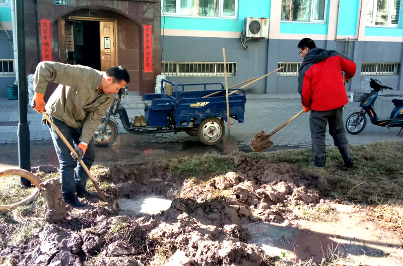 3月9日,滄鹽新區(qū)7號樓前地暖管線發(fā)生破裂。發(fā)現(xiàn)這一情況后,新區(qū)黨支部迅速組織職工及時(shí)進(jìn)行維修。他們克服了人員少、工作量大等困難,奮戰(zhàn)一天終于在晚上九點(diǎn)把管線維修好,重新恢復(fù)了轄區(qū)的正常供暖。