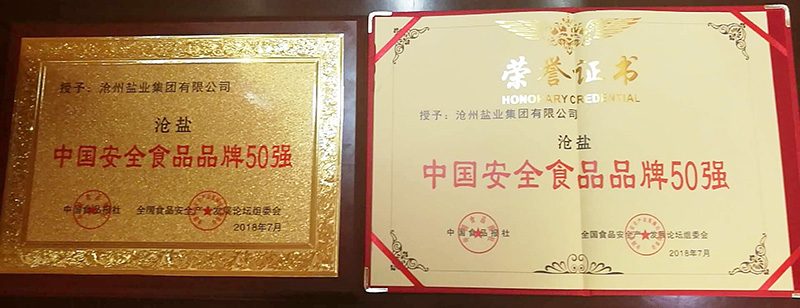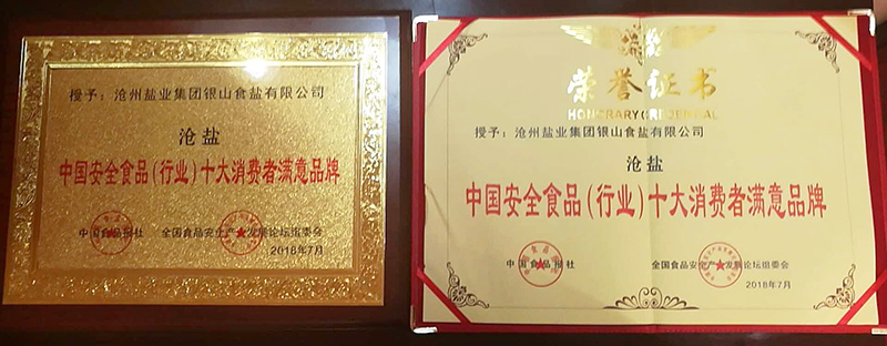 7月28日,在《中國食品報(bào)》和中國食品安全產(chǎn)品產(chǎn)業(yè)發(fā)展論壇組委會(huì)共同舉辦的“2018中國食品安全產(chǎn)業(yè)發(fā)展論壇暨放心食品品牌推廣活動(dòng)”全國評(píng)選大會(huì)上,滄州鹽業(yè)集團(tuán)有限公司和滄鹽集團(tuán)銀山食鹽有限公司生產(chǎn)的“滄鹽”牌食用鹽分別獲得“2018中國安全食品品牌50強(qiáng)”、“2018中國安全食品(行業(yè))十大消費(fèi)者滿意品牌”殊榮。這是“滄鹽”牌食鹽又一次獲得全國性大獎(jiǎng)。