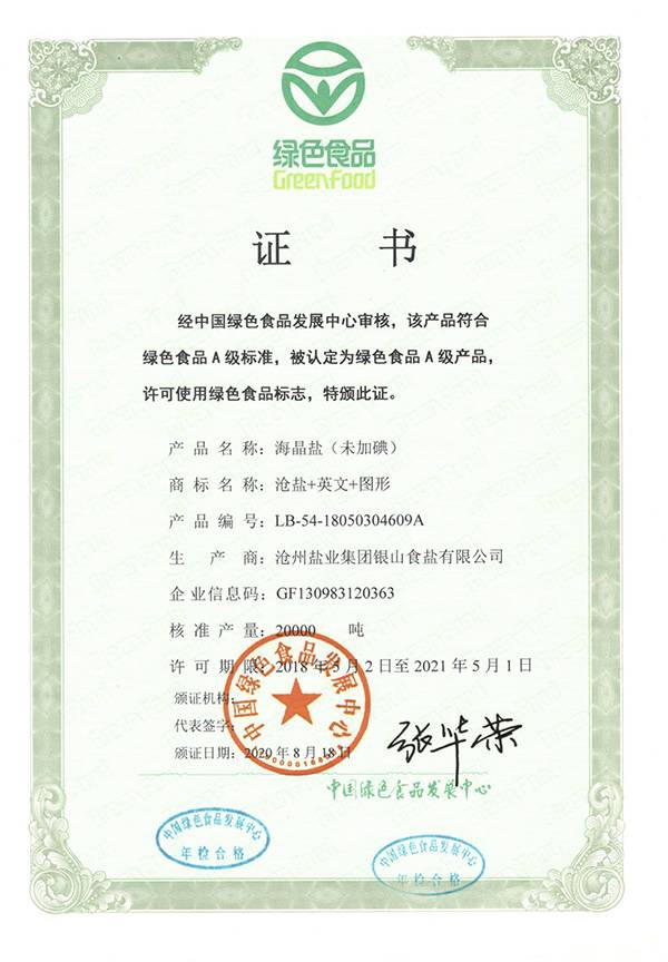 腌制鹽(加碘)綠色食品證