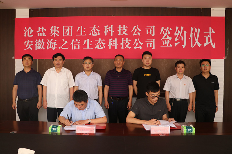 6月19日,滄鹽集團(tuán)生態(tài)科技公司與安徽海之信生態(tài)科技公司舉行合作簽約儀式,生態(tài)科技公司經(jīng)理劉佳峰與安徽海之信生態(tài)科技有限公司董事長(zhǎng)李巖分別代表雙方簽署合作意向書(shū)和供銷(xiāo)合同。滄鹽集團(tuán)領(lǐng)導(dǎo)劉建軍、文興峰、李蜻海及相關(guān)部門(mén)負(fù)責(zé)人和合作方代表出席簽約儀式。