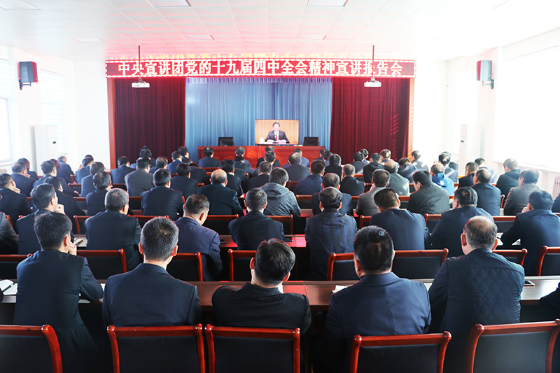 11月11日上午,中央宣講團黨的十九屆四中全會精神宣講報告會在石家莊舉行,公司黨委組織全公司中層副職以上管理人員100多人,通過在公司設立的分會場收聽收看了宣講報告。