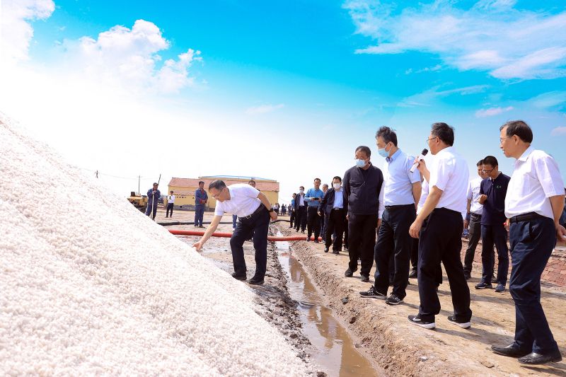 5月14日,國家發(fā)展改革委農(nóng)經(jīng)司司長吳曉帶領(lǐng)財政部、農(nóng)業(yè)農(nóng)村部、自然資源部、水利部、生態(tài)環(huán)境部、林草局、中國科學(xué)院、中國農(nóng)科院多部委聯(lián)合調(diào)研組來公司調(diào)研,深入長蘆公司詳細(xì)了解原鹽生產(chǎn)情況。河北省相關(guān)單位領(lǐng)導(dǎo),滄州市委常委,渤海新區(qū)黨工委書記、黃驊市委書記董鳴鏑,公司黨委書記、董事長劉建軍,副總經(jīng)理文興峰陪同調(diào)研。
