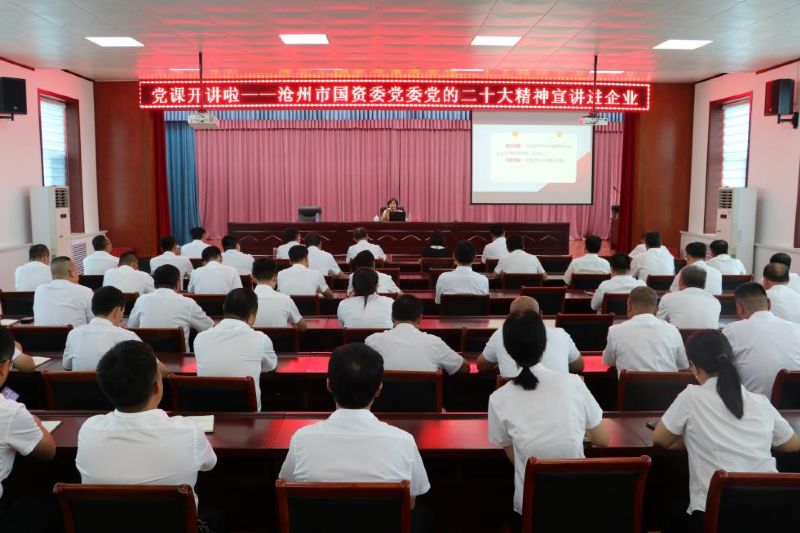 為深入學(xué)習(xí)貫徹落實黨的二十大精神,8月18日,滄州市國資委黨委特邀滄州市委“走基層”宣講團(tuán)講師、滄州市委黨校黨史黨建教研室副主任苗玲玲副教授在滄州市國資委黨建科科長劉倩的陪同下,來我公司進(jìn)行黨的二十大精神進(jìn)企業(yè)宣講。集團(tuán)公司在家領(lǐng)導(dǎo),基層各單位黨總支、黨支部書記,機(jī)關(guān)黨群部門的負(fù)責(zé)同志及部分黨員代表60余人參加了宣講報告會。宣講報告會由黨委副書記王化池主持。