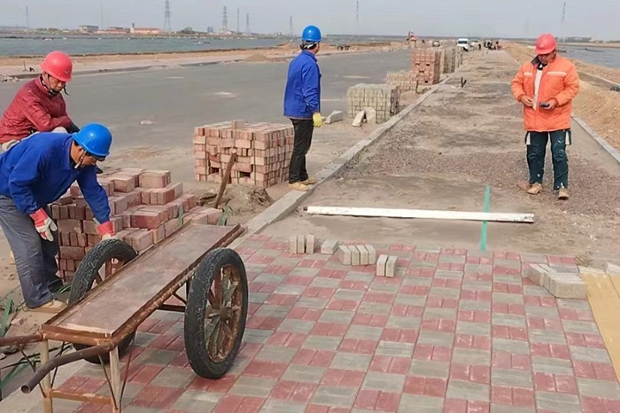 截至目前,緯三路項目的人行道砂墊層及面包磚鋪設工作已全部完成,項目負責人正積極溝通大元集團,推進路燈桿等材料進場安裝。滄州新建瑞祥化學科技有限公司年產1000噸MMD項目消防車庫、分析化驗樓等單體工程已全部完成主體封頂。滄鹽龍順木業(yè)項目也完成了材料進場并開始施工。